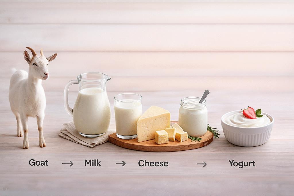 Goat production opens doors for small-scale processing such as yogurt, cheese, milk powder, leather products and packaged meat cuts. These value-added products can significantly increase income and reduce post-harvest losses, especially in urban markets and export-oriented enterprises.